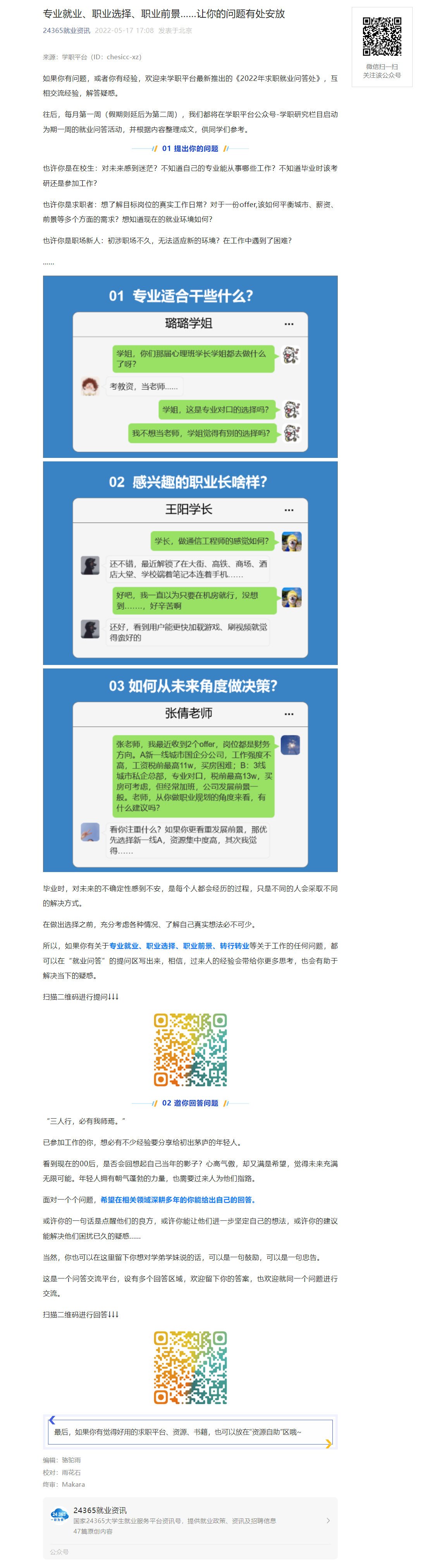 专业就业、职业选择、职业前景……让你的问题有处安放