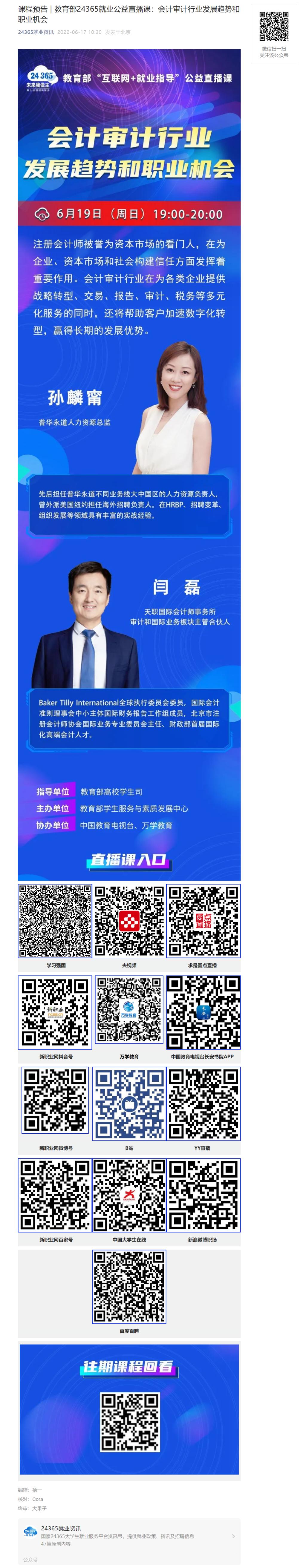 课程预告 | 教育部24365就业公益直播课:会计审计行业发展趋势和职业机会