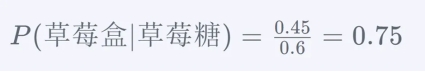 其中,P(草莓糖) = P(草莓糖|草莓盒)×P(草莓盒) + P(草莓糖|柠檬盒)×P(柠檬盒)