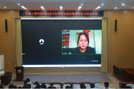 九江职院新闻网讯(信息工程学院 王浩力 袁浩浩)9月14日下午,信息工程学院在濂溪校区办公楼报告厅召开2024届毕业生就业暨顶岗实习动员大会。该院党总支书记刘浩,副院长虞芬、刘官印出席,全体毕业班班主任和各班学生代表参加。