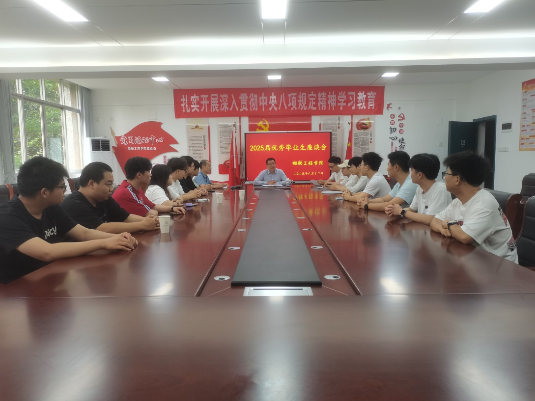 本网讯(船舶工程学院)为搭建学院与毕业生沟通桥梁,了解毕业生需求、传递关怀和爱心,助力毕业生开启新征程,6月12日下午,船舶工程学院在十里校区2号教学楼218会议室召开2025届优秀毕业生座谈会,该院党总支书记彭欣健主持,船舶学院2025届优秀毕业生参加。