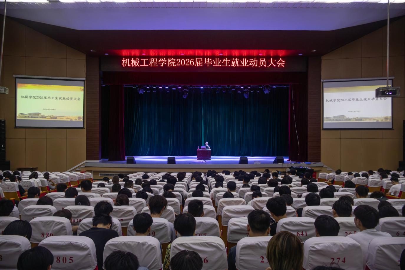 本网讯(机械工程学院) 为切实做好 2026 届毕业生就业服务工作,帮助毕业生清晰认知就业形势、科学规划职业生涯,9 月 14 日 18 时 30 分,机械工程学院在十里校区大礼堂隆重召开 2026 届毕业生就业动员大会。大会由学院就业干事于伟伟主持,学院党总支书记徐月明担任主讲人,全体毕业班班主任毕业生参会,充分展现了毕业生对就业规划的重视与期待。 大会伊始,于伟伟干事围绕 “全国高校毕业生登记系统” 的操作使用展开专项指导。他结合系统界面截图与实际操作演示,从 “账号登录安全注意事项”“个人基本信息核对要点”“毕业去向(就业、升学、待业等)分类填报规范”“信息提交后的审核流程” 四个维度进行细致讲解,着重强调:“毕业去向登记不仅是完成个人毕业手续的关键环节,更是学院精准掌握就业动态、靶向推送岗位资源的重要依据,务必确保信息真实、填报及时。