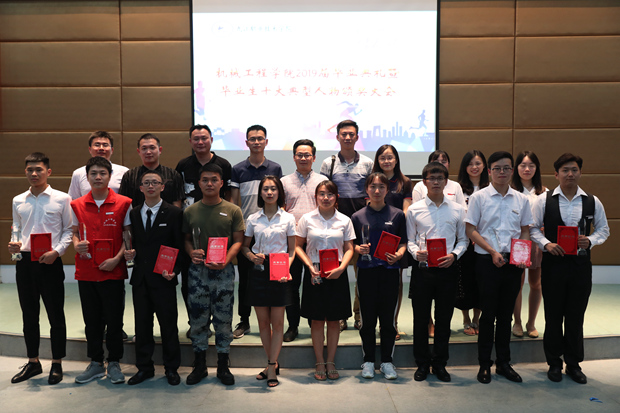 大会在庄严的国歌声中拉开帷幕。机械工程学院主持工作的副院长郭文星发表致辞,他对毕业生们三年来的成长和所取得的成绩表示肯定和祝贺,并提出三点希望:一是终生学习,敢于创新;二是脚踏实地,精益求精;三是报效祖国,热爱母校。党总支书记徐月明宣读了《机械工程学院2019届优秀毕业生表彰决定》,他表示,希望毕业生们能够继续关注和支持学校发展,常回母校看看。
