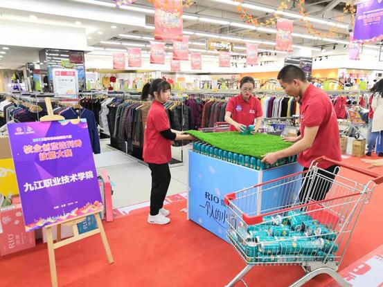 活动由“商品陈列”和“陈列讲解”两部分组成。“商品陈列”要求陈列者正确使用价格牌、文化牌等道具,体现创意、丰满、量感、整齐、美观等要素,做到让顾客易看、易懂、易拿、易取。“陈列讲解”要求讲解人主题明确、思路清晰。我校师生将学校与企业元素融入创意陈列当中,用鸡尾酒陈列出一艘扬帆启航的船形(寓意船校),并以“永九号”命名(寓意永辉和九职的合作),获得了现场评委和顾客的高度好评。
