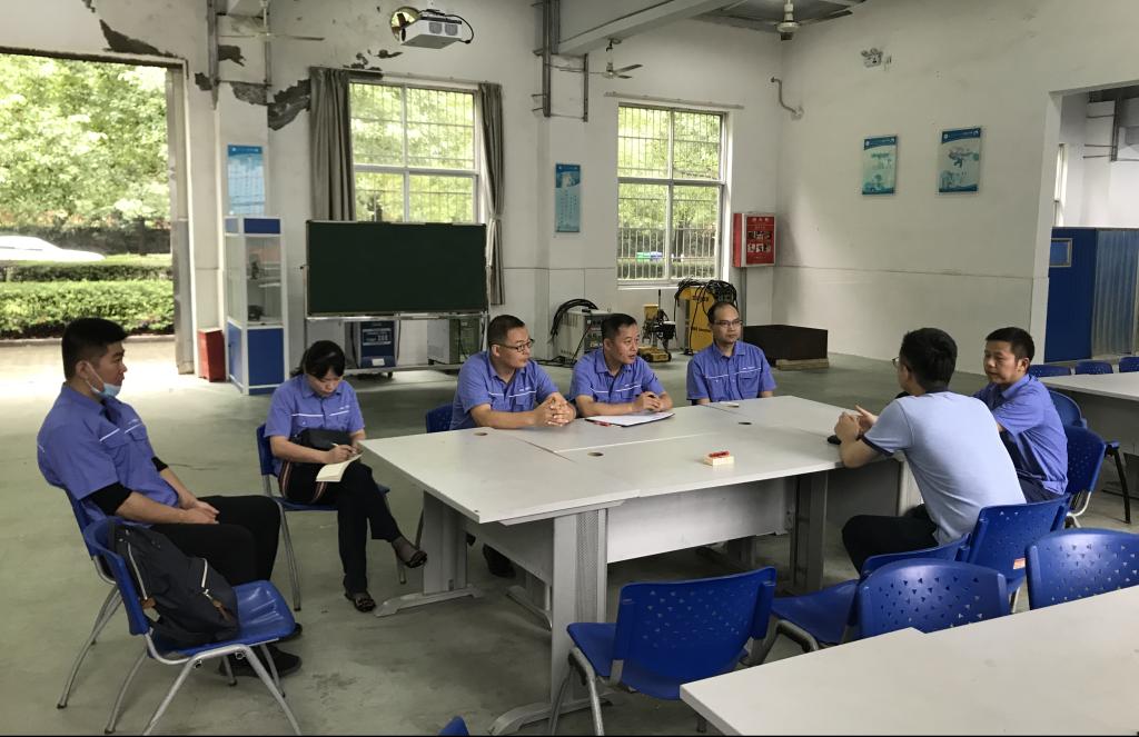 九江职院新闻网讯(船舶工程学院 吴振勇)7月28日上午,中船集团九江海天设备制造有限公司军品事业部经理刘家明、技术部主任肖中等一行6人来我校船舶工程学院洽谈校企合作事宜,就焊接机器人应用、复合型焊接技能人才培养等进行交流讨论,该院实践教研室主任徐剑、焊接教研室教师吴振勇参加会议。