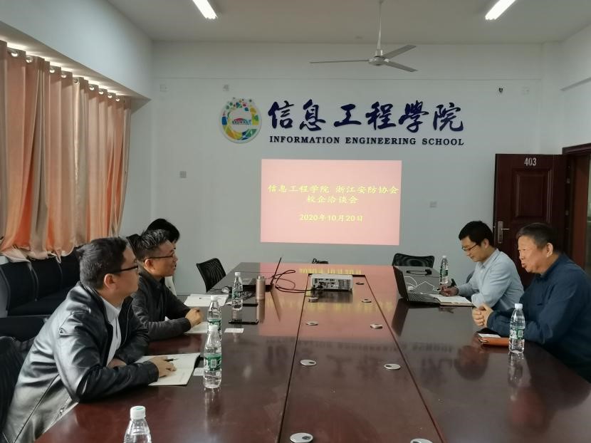 (信息工程学院 陈灿雄)10月20日15时,信息工程学院与浙江省安全技术防范行业协会校企洽谈会在濂溪校区办公楼副楼403会议室举行,该院主持工作的党总支副书记刘浩,副院长虞芬,副院长刘官印等出席了洽谈会。