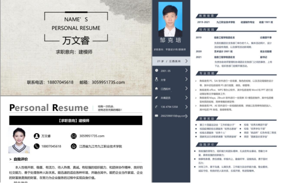 此次比赛分为初赛和复赛两个阶段,共征集简历作品近300件,其中50件作品脱颖而出进入决赛,作品设计围绕封面设计、个人简介、能力展示和创新思想等方面展开。经评审,来自动漫1901班的万文睿获得一等奖,安卓1901班李鸣、网络1905俞献辛等12位同学分获二、三等奖和优秀奖。